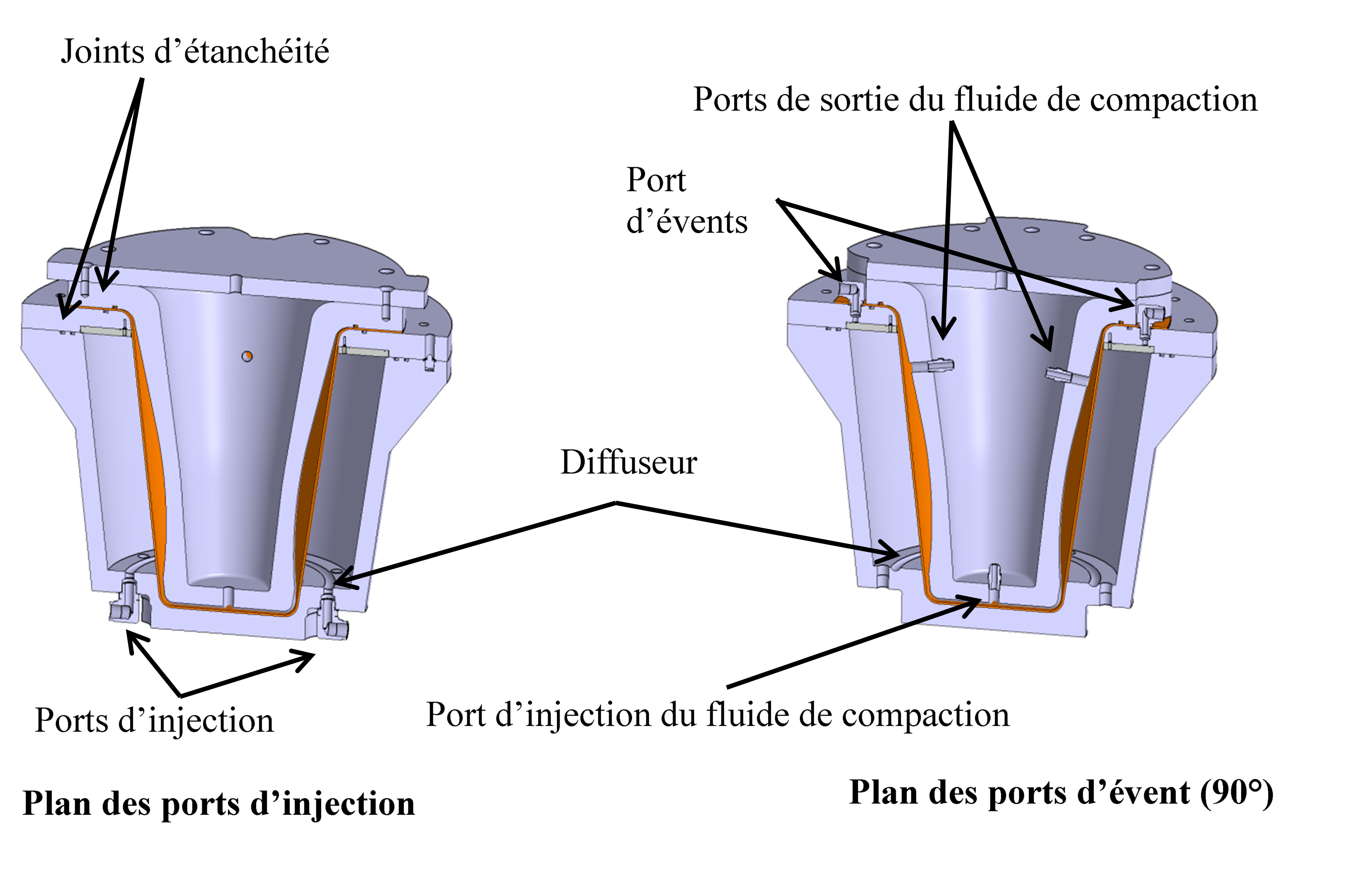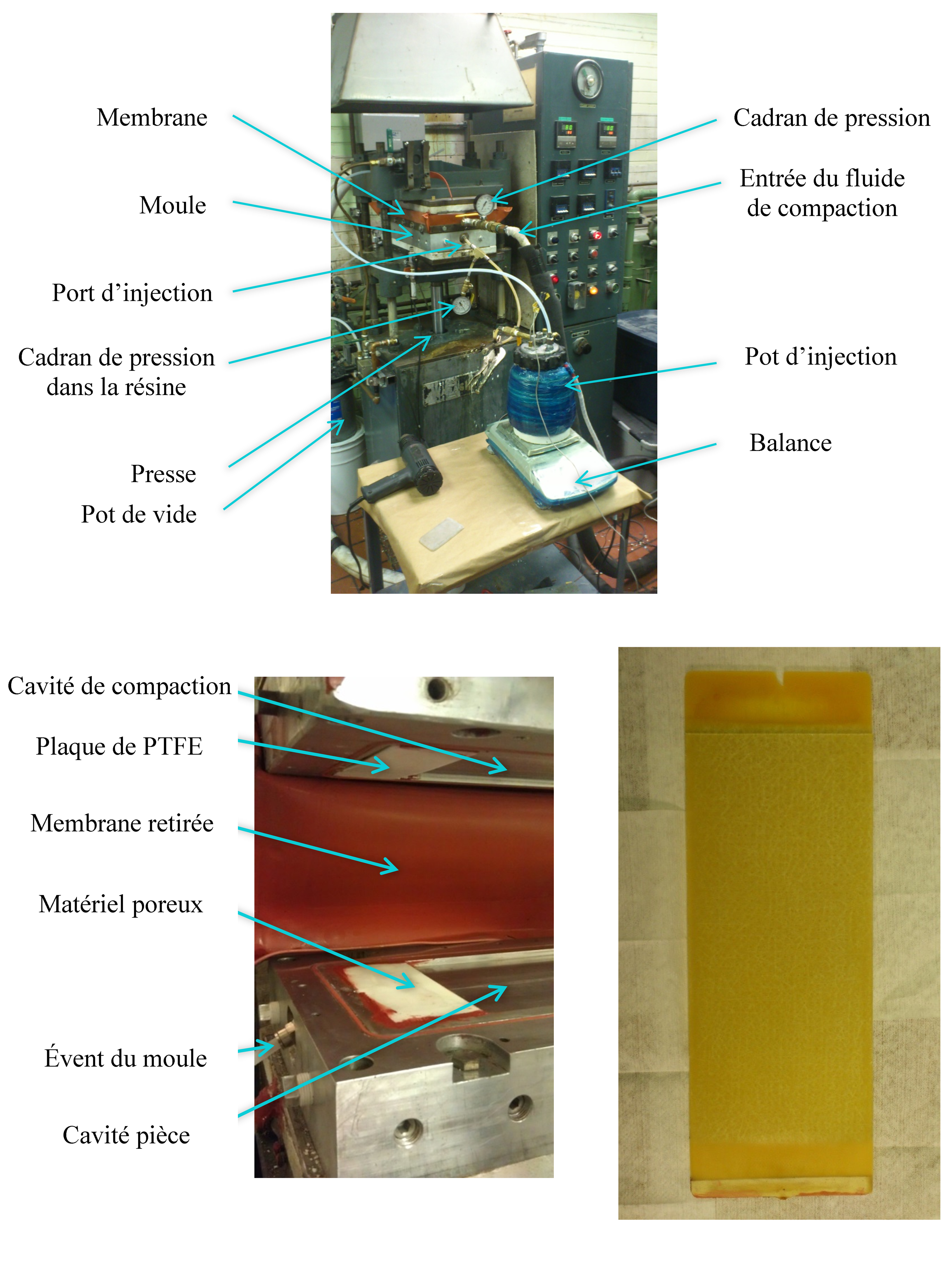 Référence texte et photos : Shebib Loiselle, V. (2013). Fabrication par injection flexible de pièces coniques pour des applications aérospatiales. (Mémoire de maîtrise, École Polytechnique de Montréal, Montréal, Canada).