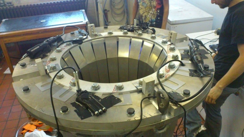 Dans le cadre de la première chaire de recherche Safran à Polytechnique, le groupe Safran fournisseur des moteurs des lanceurs de l’agence spatiale européenne, a mandaté l’école de mettre à l’essai un nouveau procédé pour la fabrication des bruts d’usinage des tuyères de moteurs spatiaux en composite carbone-phénolique. Depuis quelques années, la fabrication de ces pièces a passé de l’enroulement de préimprégné vers l’utilisation de renforts carbone secs enroulés et aiguilletés, cette dernière opération leur confère une structure 3D réduisant la délamination entre les couches. Après l’enroulement, la préforme de fibre est infusée et la polymérisation de la résine est effectuée en autoclave sous forte pression et température. Outre les coûts importants d’achat et d’utilisation de l’autoclave, certains problèmes subsistent avec cette technique. Pendant le moulage, une compaction du renfort doit être effectuée pour augmenter le taux de fibre. Pendant cette étape, la pression est appliquée sur la pièce de l’extérieur vers l’intérieur mettant en compression les fibres circonférentielles. Des problèmes de flambement peuvent être rencontrés, réduisant considérablement l’intégrité des pièces. De plus, cette pièce étant soumise à des températures pouvant atteindre 3000°C en service, des porosités ouvertes sont nécessaires pour l’évacuation de la vapeur d’eau contenue dans la résine phénolique constituant la matrice. Ces porosités doivent être présentes entre 5 et 10 % en volume, mais les paramètres qui influencent le taux de porosités sont mal connus. Le président de Tresca R&D, alors candidat à la maitrise, a été le maître d’œuvre de ce projet de recherche appliquée en coordonnant et supervisant le travail de 12 stagiaires de recherche et étudiants aux cycles supérieurs.