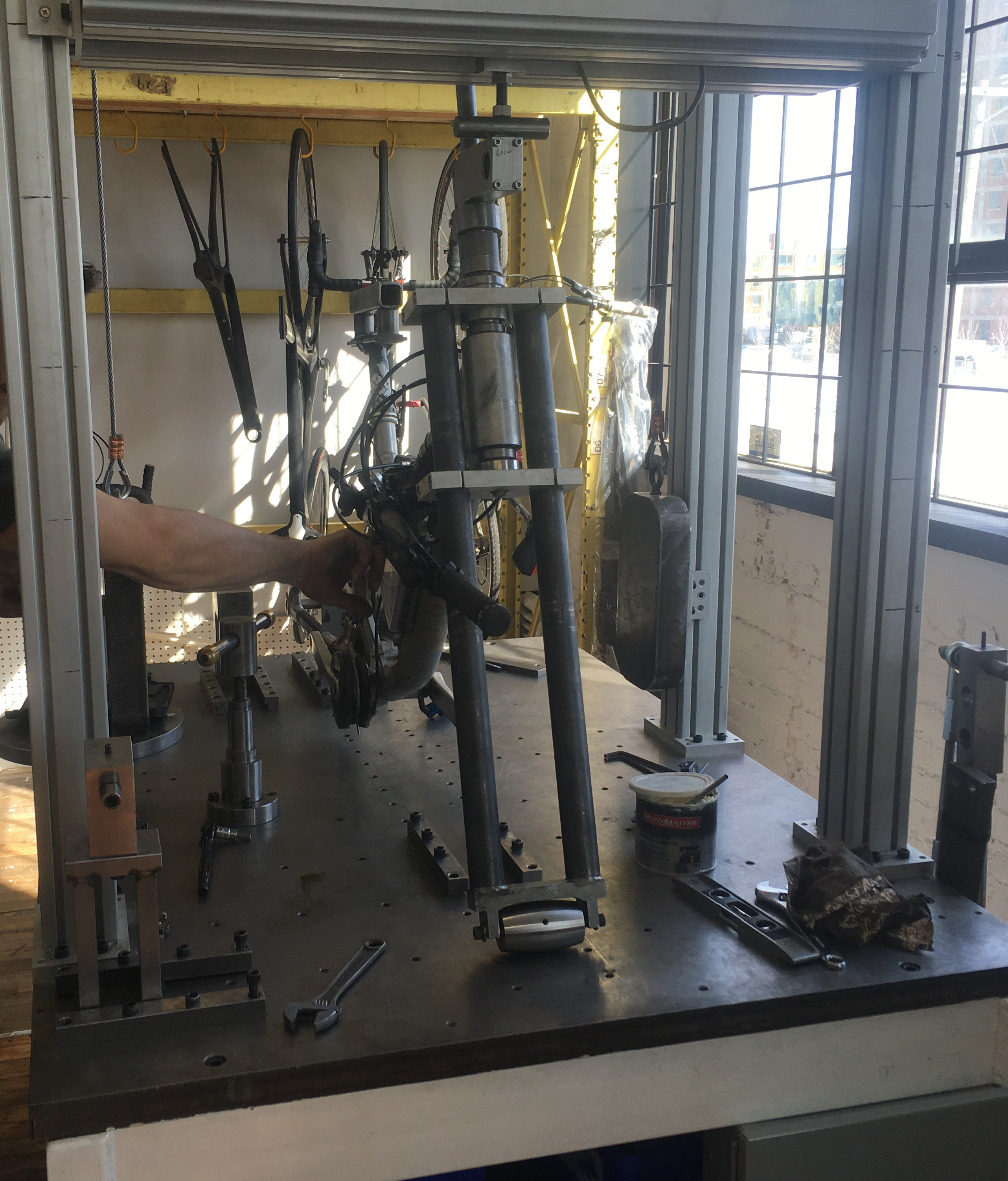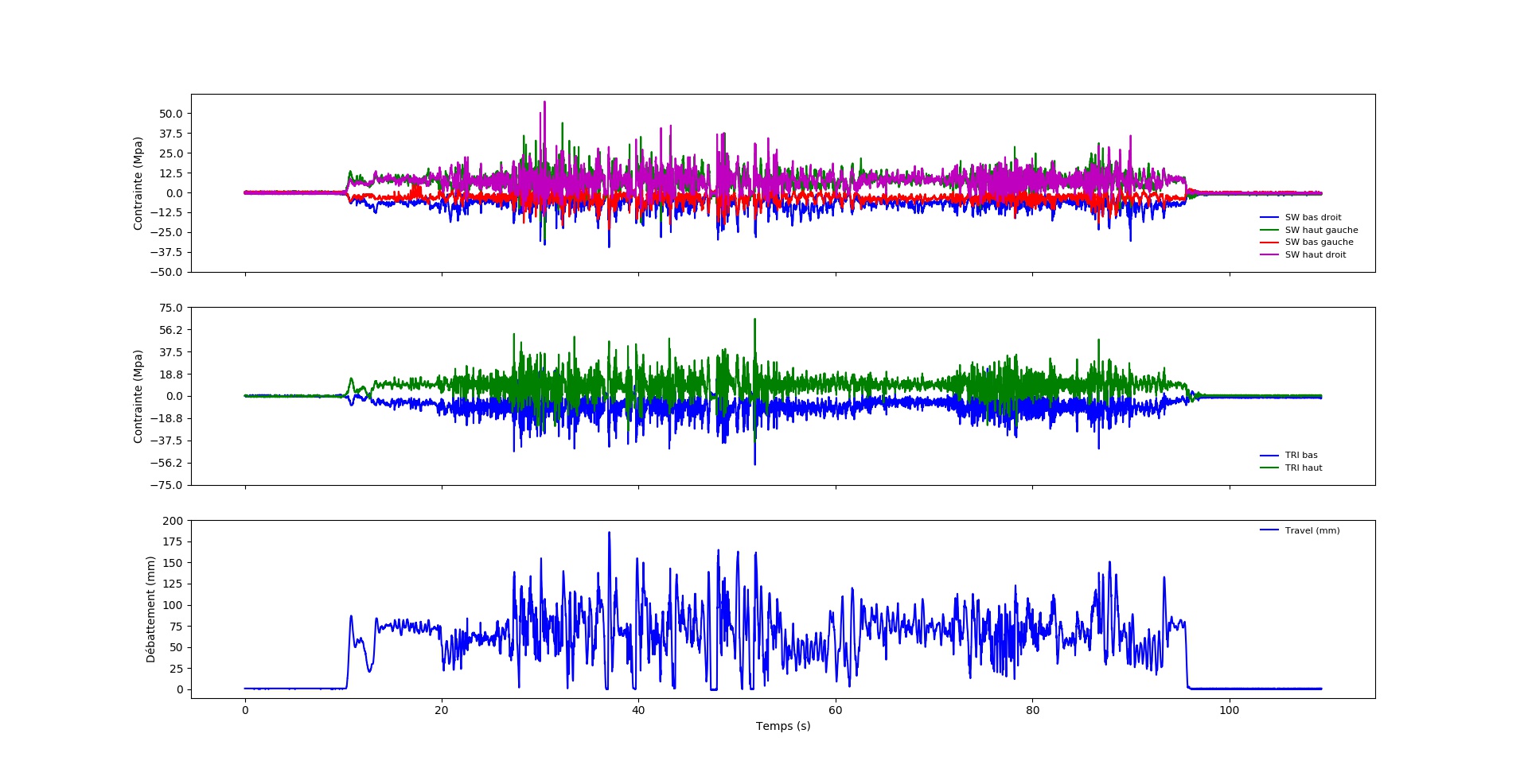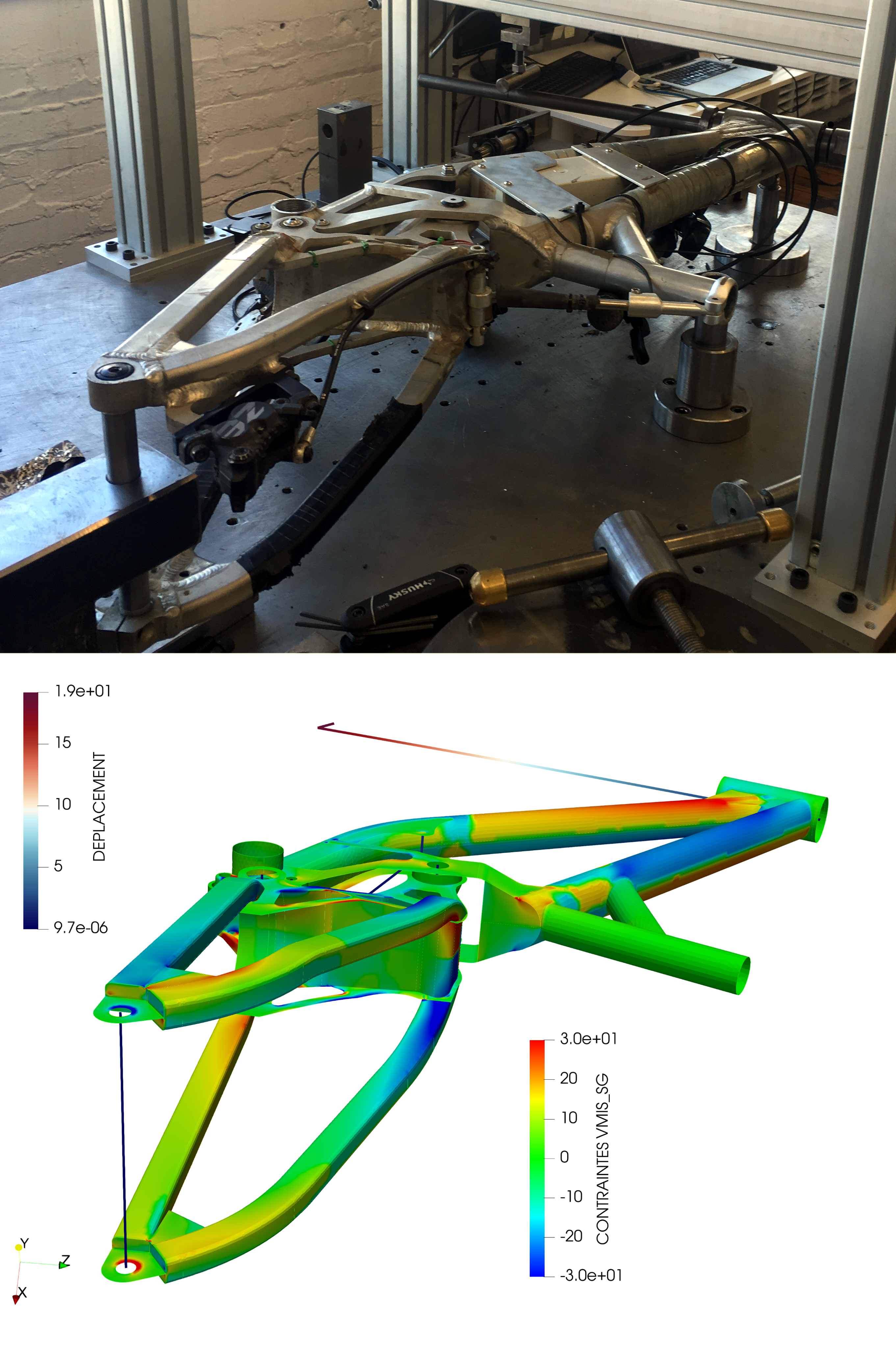 Des débuts du sport jusqu’aux années 2000, la fiabilité des cadres et des pièces de vélos de montagne était sérieusement problématique. Les cadres sectionnés, les roulements usés, les dérailleurs arrachés étaient plus que fréquents. Concevoir et fabriquer son propre vélo de montagne de descente apparaissait plus sécuritaire que d’utiliser ceux sur le marché. Le projet est donc né de la passion du président de Tresca R&D pour le vélo de montagne, l’ingénierie et sa volonté de construire un vélo optimisé et indestructible. Après une analyse approfondie du comportement dynamique et des caractéristiques des différents systèmes de suspension, Tresca R&D a réalisé la conception et la fabrication d’une série de 4 prototypes de vélo de descente. Tresca R&D a ensuite développé un système d’acquisition embarqué, contrôlé par téléphone intelligent permettant d’enregistrer des déformations du cadre et le déplacement des suspensions. Le but de l’étude est de valider les concepts dynamiques du vélo mis de l’avant et de reconstituer des cas de chargements ultimes et en fatigue réaliste pour ce système où le mouvement du conducteur et le terrain toujours changeant influencent grandement la dynamique. Ces cas de chargement pourront servir à l’optimisation structurelle du vélo lors des prochaines améliorations.